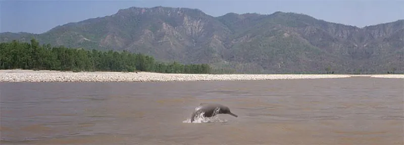 The dolphin distribution within these rivers is highly uneven and significantly influenced by seasonal variations in water levels, with sightings fluctuating due to changes in water depth and flow. Upon descending from Chisapani, the Karnali splits into two primary channels. The eastern channel forms the westernmost boundary of Bardia National Park, while the western channel flows past Tikapur. This western channel is fed by several streams, including the Mohana, Kandra, Kada, and Khuleria, which swell during the monsoon season, providing essential migratory spaces for dolphins when the main channels experience high water currents.